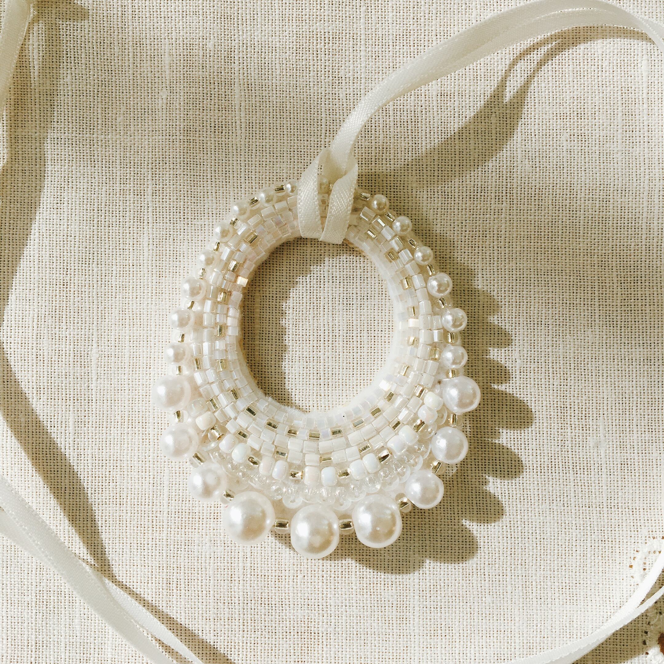 軽いパールを使用し50mm×60mmと大振りながら、約5gと軽く長時間つけていても気になりません。ホワイト×シルバーでカジュアルにもフォーマルにも使いやすいデザインです。