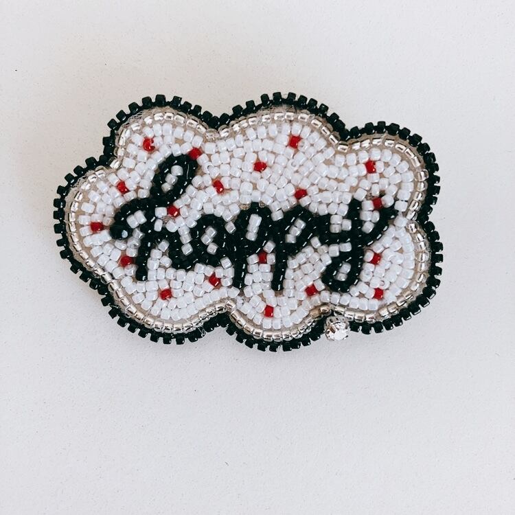 付けるだけでなんだかハッピーな気分になる吹き出しブローチです。ドットがアクセントになり、よりポップでhappyなイメージに仕上げました。