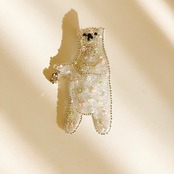 愛らしい白クマをモチーフにしたローチキットです。愛らしいデザインながら、優しいパステルカラーのスパンコールのお花がさりげなく、右手のラインストーンが華やかさをプラス。甘すぎない大人可愛いブローチです。